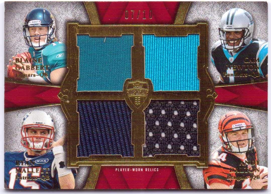 Cam Newton Andy Dalton Blaine Gabbert Ryan Mallett 2011 Topps Supreme Rookie Quad Game Worn Jerseys Red 07 10 Srqc Gnm Panthers Bengals Patriots Jaguarsd At Amazon S Sports Collectibles Store